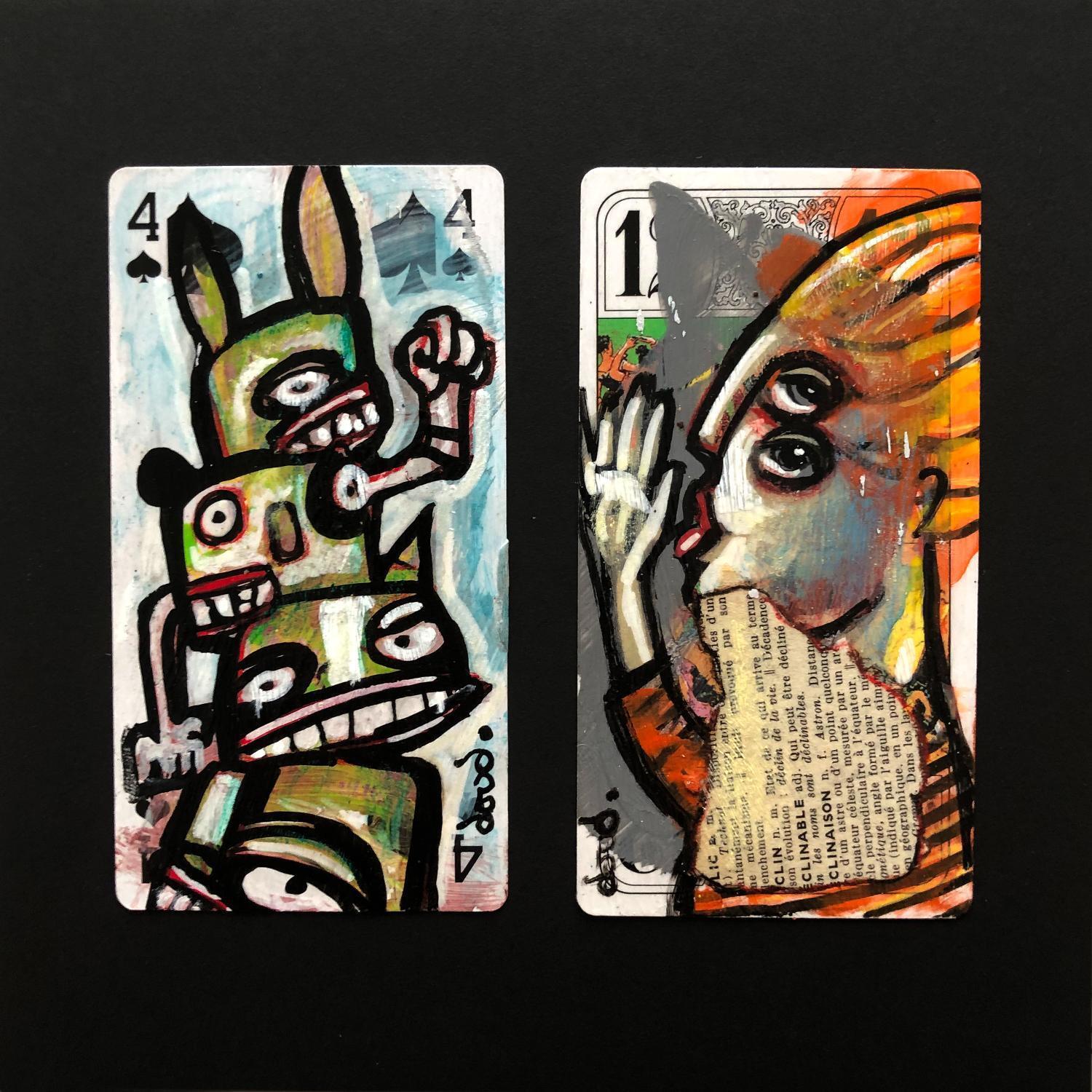 Le Breton Loic Tarin alias Doudoudidon a passé un bac puis un diplôme de graphiste publicitaire. Il a d'abord créé des visuels, des illustrations et plus récemment un déclic s'est déclenché pour entamer une vie artistique. Influencé par ses lectures et écoutes scientifiques parfois techniques, il s'interroge depuis longtemps sur la topographie de l'univers, les théories darwiniennes, les sciences humaines… Considérant « qu'il ne sait rien », il propose des « peintures » poétiques et expressives, intuitives (pour lui la peinture est d'abord de la poésie silencieuse). L'idée du détournement de supports est à la base de sa pratique artistique. Il aime utiliser ce qui est initialement un déchet destiné au recyclage et détourner des icônes comme les figures des cartes à jouer sur des thématiques inspirées du Moyen Age. Il détourne des plaques « offset », sorte de plaques rigides en aluminium d'imprimerie. Il recycle aussi les films de radiographies médicales : leur transparence plastique d'un bleu pétrole, l'idée d'une photographie de l'esprit l'intéresse.