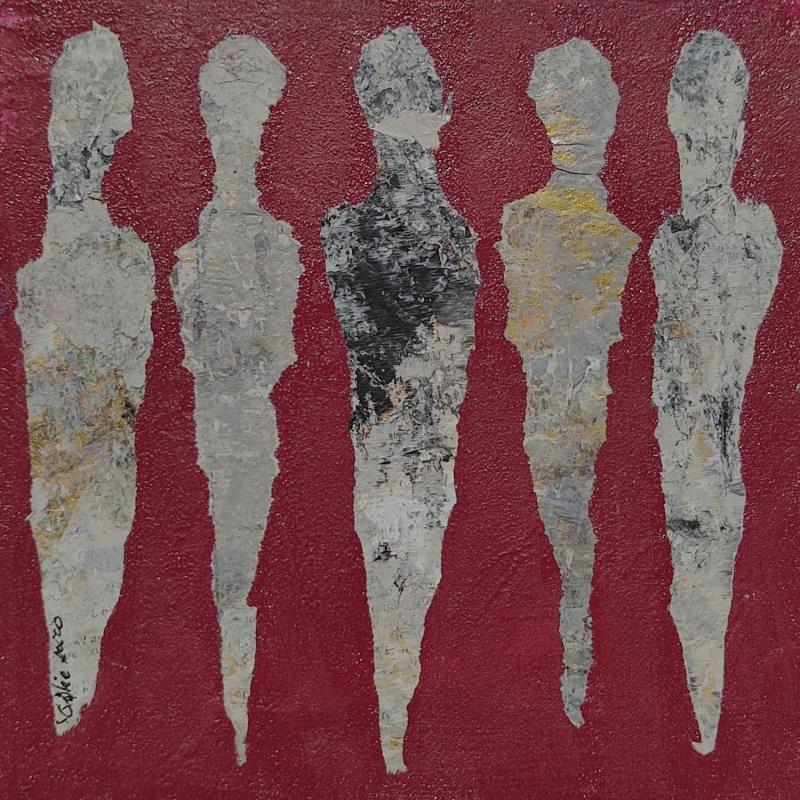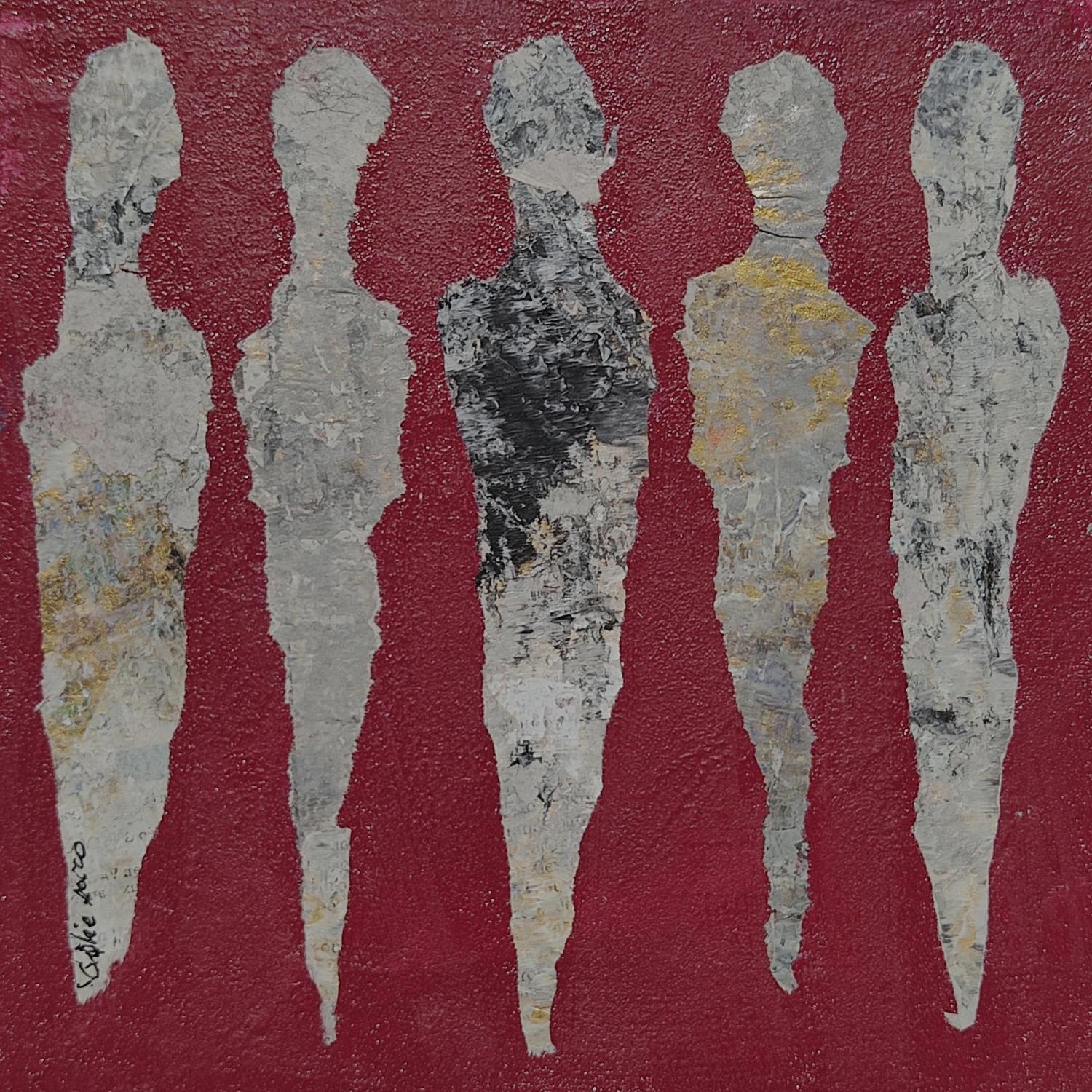 L'artiste a utilisé les techniques Acrylique, Collage, Sable pour créer cette peinture petit format sur Carton toilé de style Art Singulier.