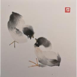 Peinture Les chicks c'est chic 1 par De Giorgi Mauro | Tableau Art Singulier Animaux Noir & blanc