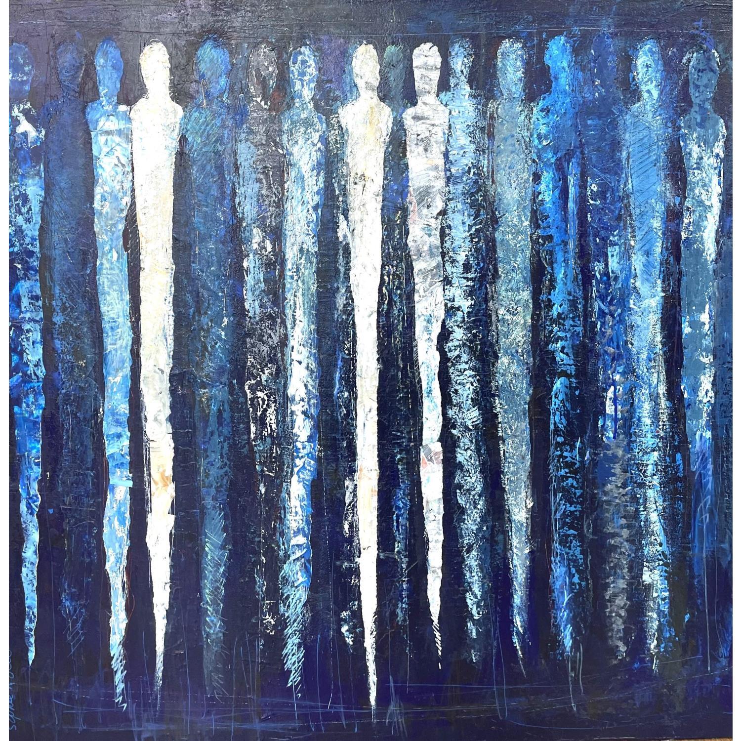 L'artiste a utilisé les techniques Collage, Sable, Acrylique pour créer cette peinture grand format sur Bois de style Art Singulier.
