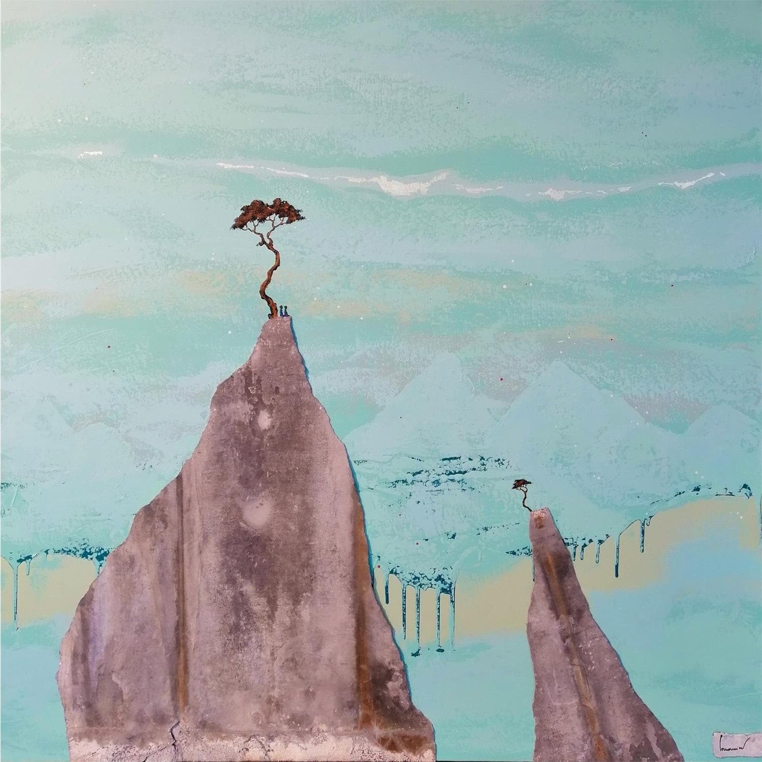 L'artiste a utilisé différentes techniques pour créer cette peinture grand format sur toile de style Art Singulier sur les thèmes Paysages, minimaliste.