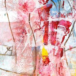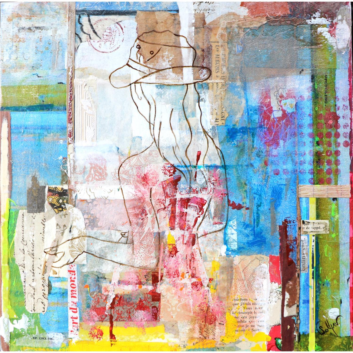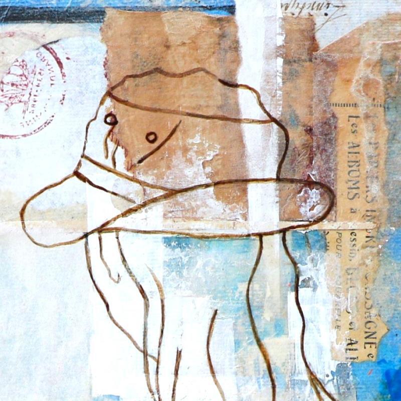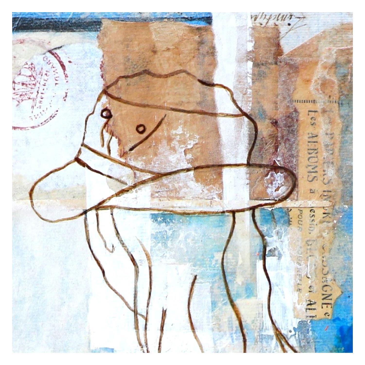 L'artiste a utilisé la technique mixte, Upcycling, pastel sec, Encre, Acrylique pour créer cette peinture petit format sur Bois de style Art Singulier.
