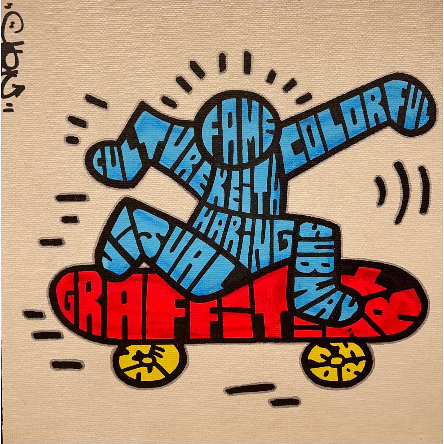 Cette oeuvre d'art contemporain unique et originale "Keith Haring SK8" a été réalisée par l'artiste contemporain Cmon.