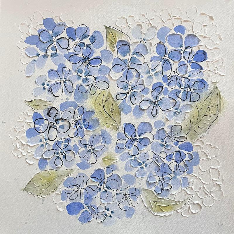 Cette oeuvre d'art contemporain unique et originale "Blue Hydrangeas" a été réalisée par l'artiste contemporain Caitrin Alexandre.