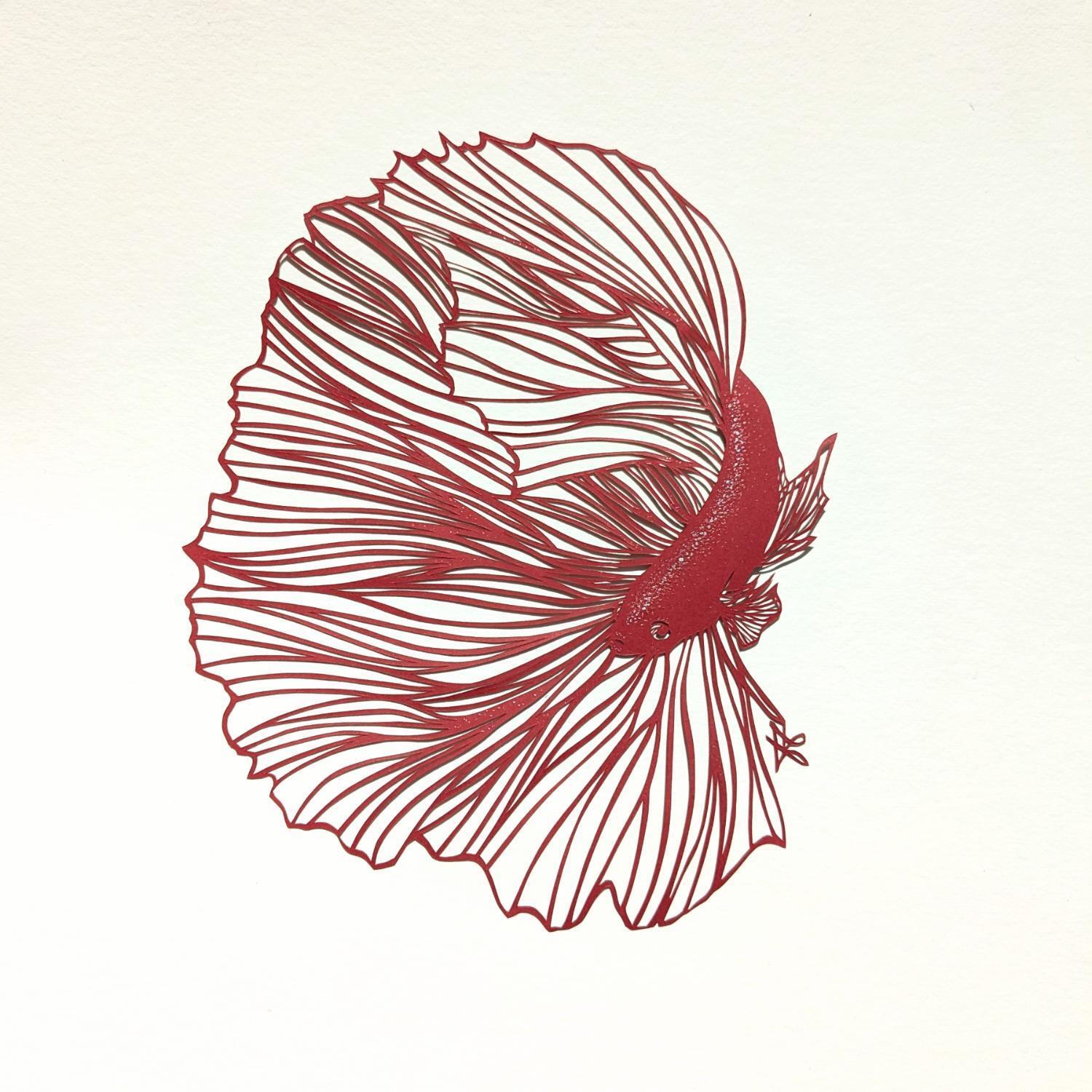 Peinture Combattant 11 par Atalanta Vanessa | Tableau Marine Nature Animaux Carton Papier