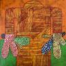 L'artiste a utilisé la technique Collage pour créer cette peinture petit format au style singulier.