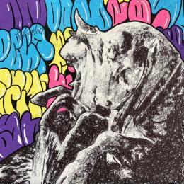 Cette oeuvre d'art contemporain unique et originale "taureaux aux tags " a été réalisée par l'artiste contemporain André Raphaël.