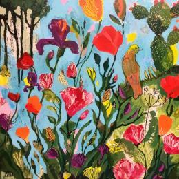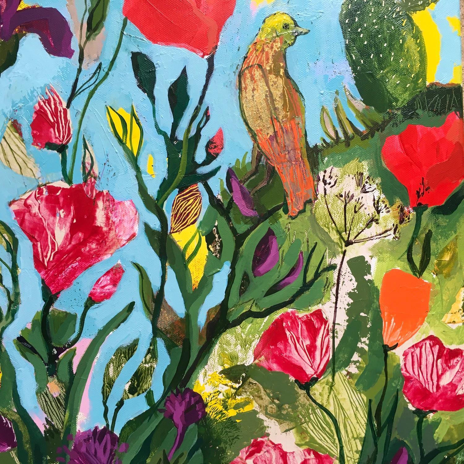 Peinture Symphonie de l’oiseau doré  par Bertre Flandrin Marie-Liesse | Tableau Figuratif Nature Animaux Acrylique Collage