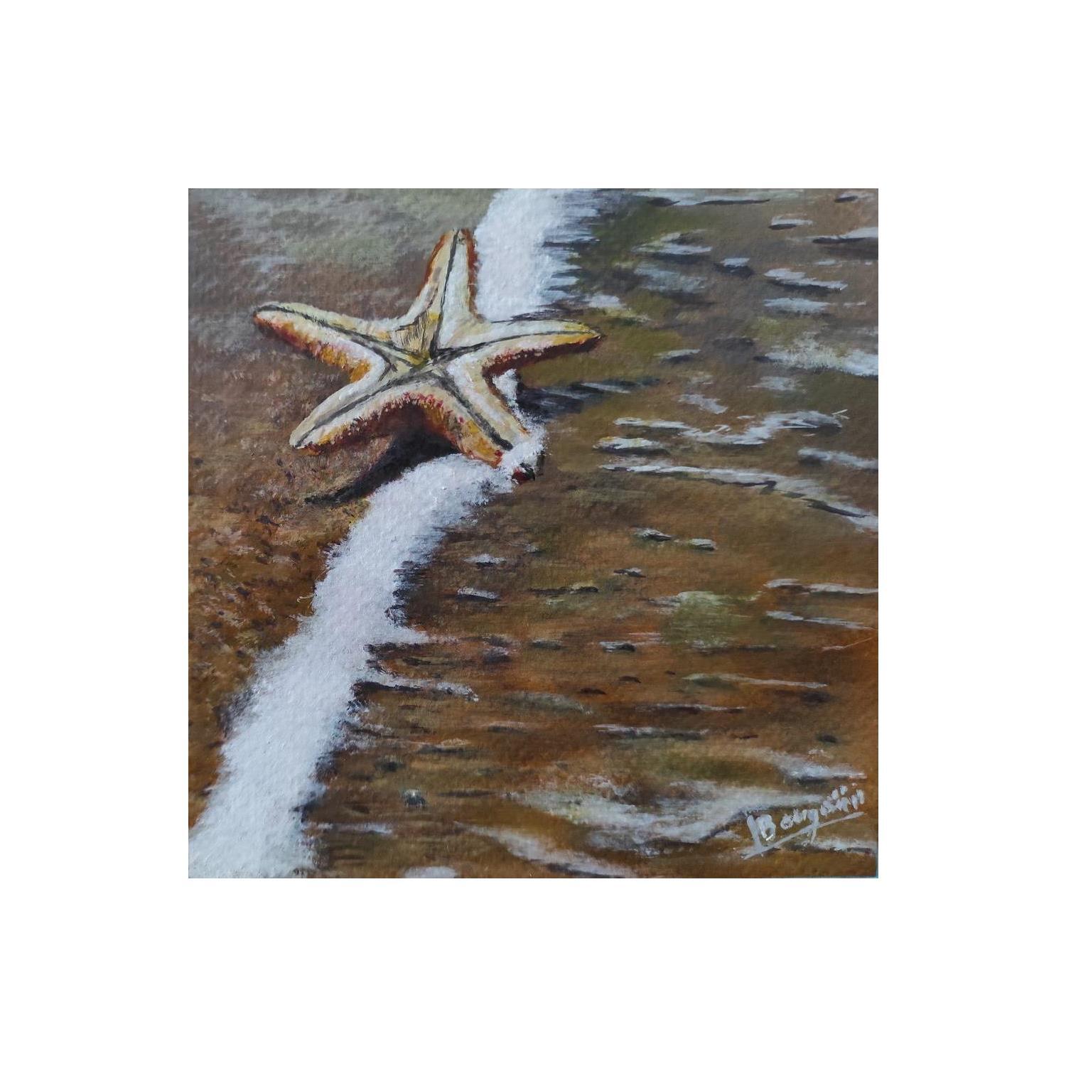 L'artiste a utilisé la technique Acrylique pour créer cette peinture petit format sur Papier de style Figuratif sur le thème Marine.