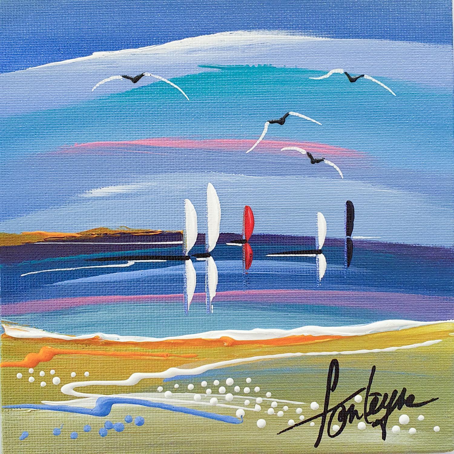 L'artiste a utilisé la technique Acrylique pour créer cette peinture petit format sur Toile de style Figuratif sur le thème Marine.