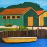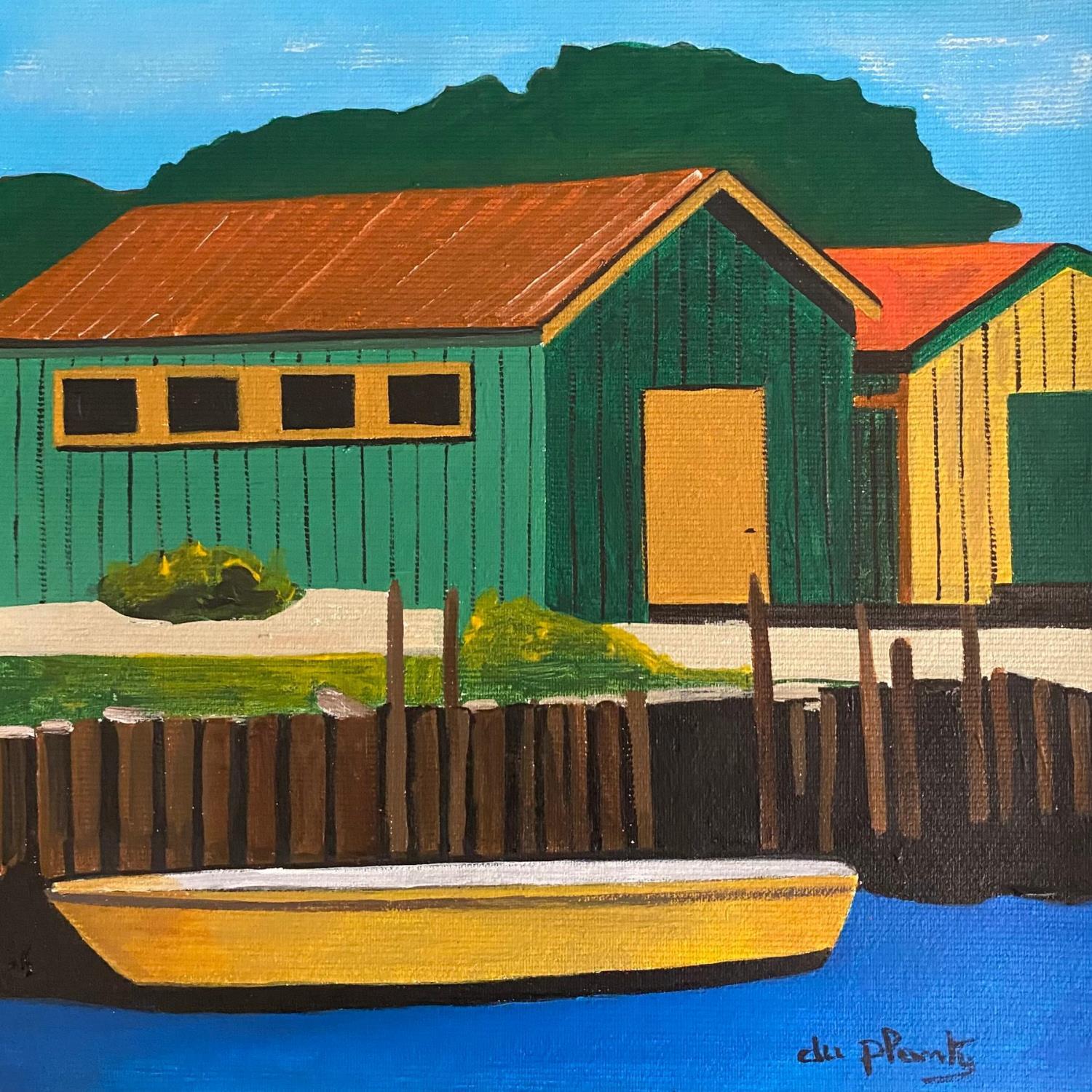 Cette oeuvre d'art contemporain unique et originale "Cabane verte et Bateau Jaune" a été réalisée par l'artiste contemporain Du Planty Anne.