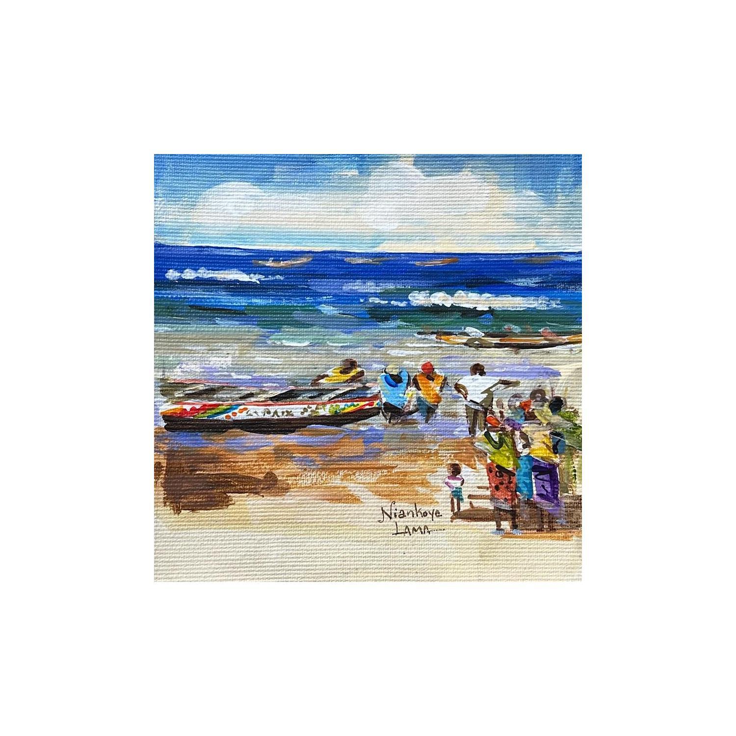Cette oeuvre d'art contemporain unique et originale "Arrivee de pecheurs" a été réalisée par l'artiste contemporain Lama Niankoye.