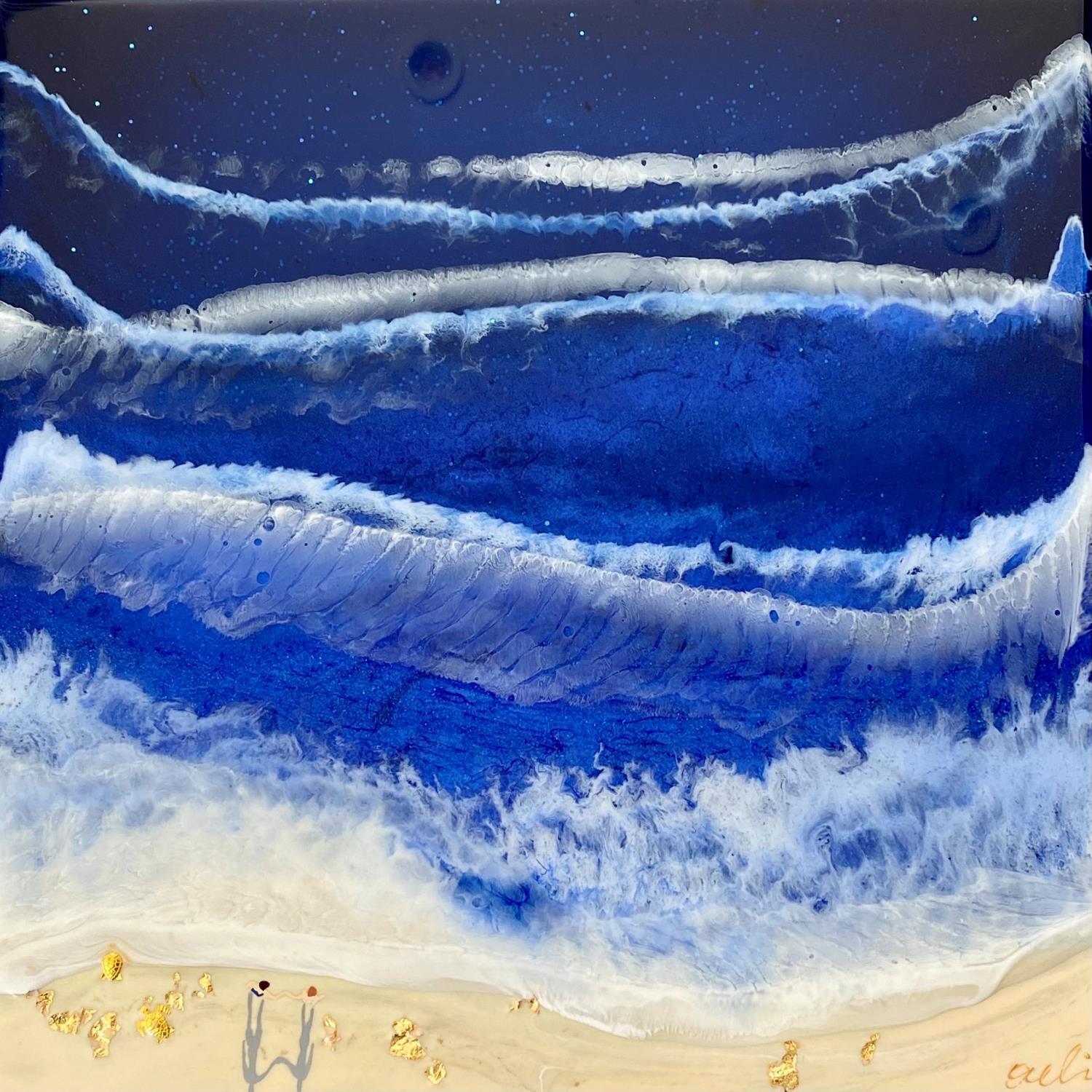 L'artiste a utilisé les techniques Acrylique, Résine pour créer cette peinture petit format sur Dibon de style Figuratif sur les thèmes Marine, Minimaliste, Paysages.