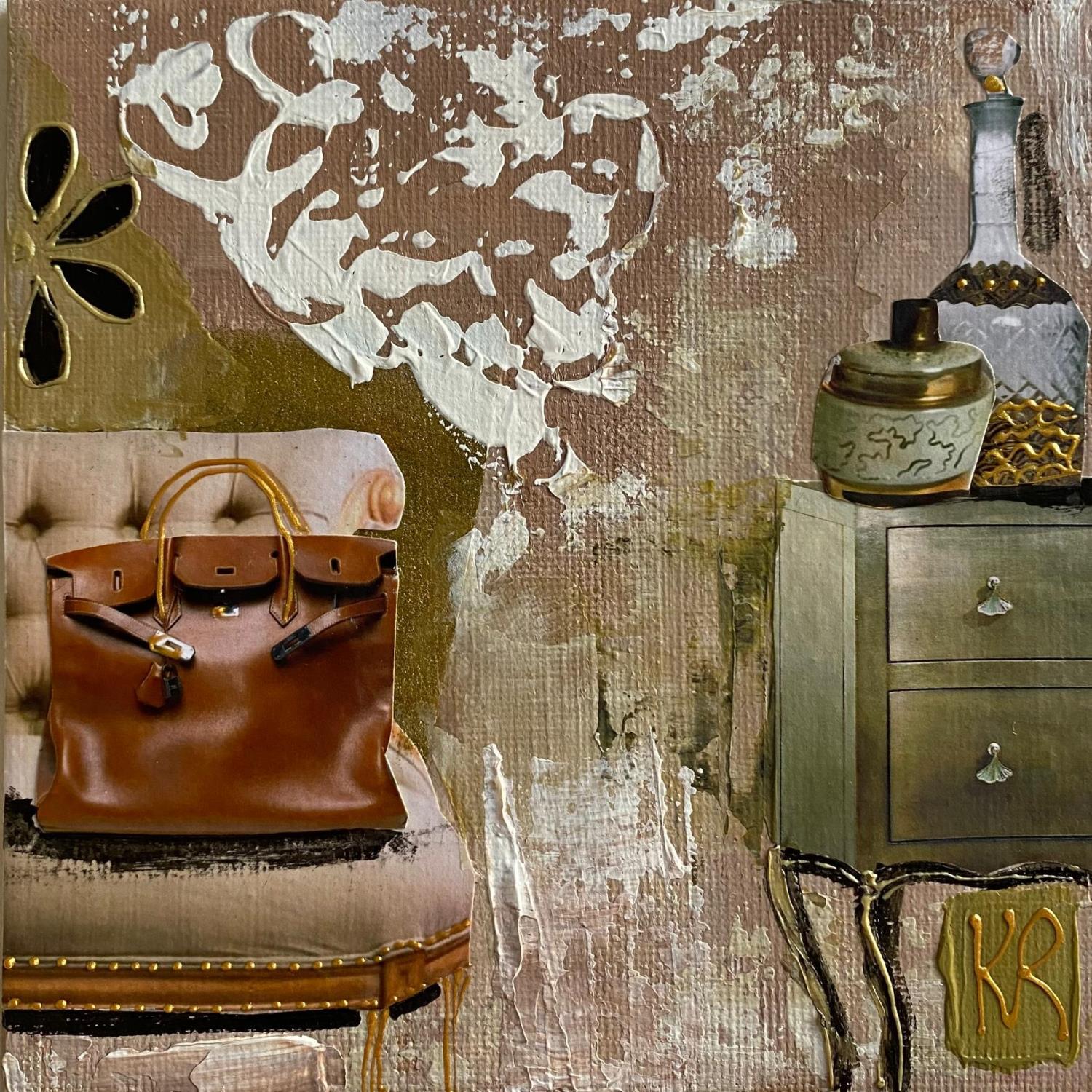 L'artiste a utilisé les techniques Acrylique, Collage pour créer cette peinture petit format sur Carton toilé de style Figuratif sur le thème Mode.