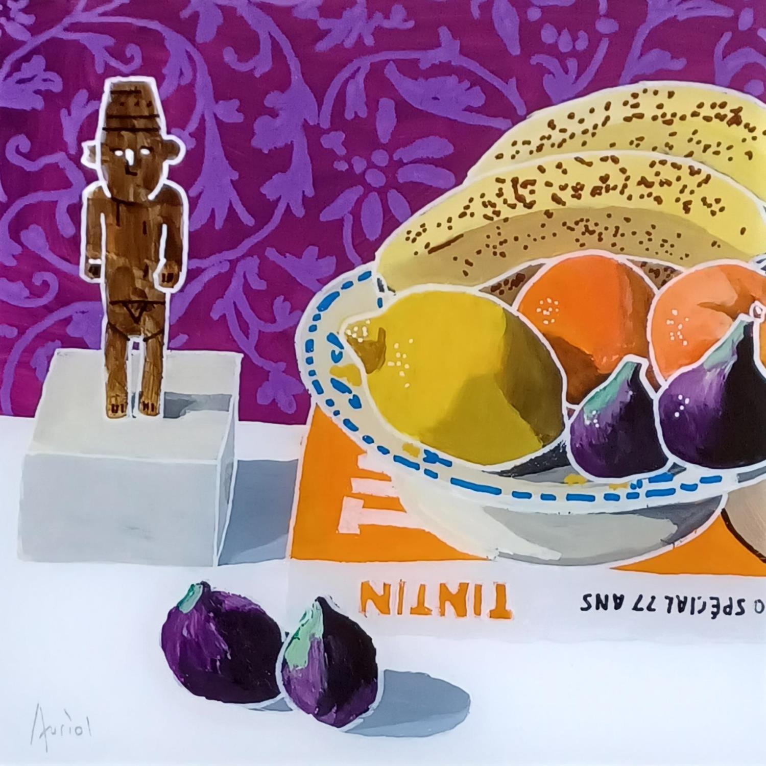 Cette oeuvre d'art contemporain unique et originale "Tintin fait son marché" a été réalisée par l'artiste contemporain Auriol Philippe.