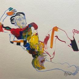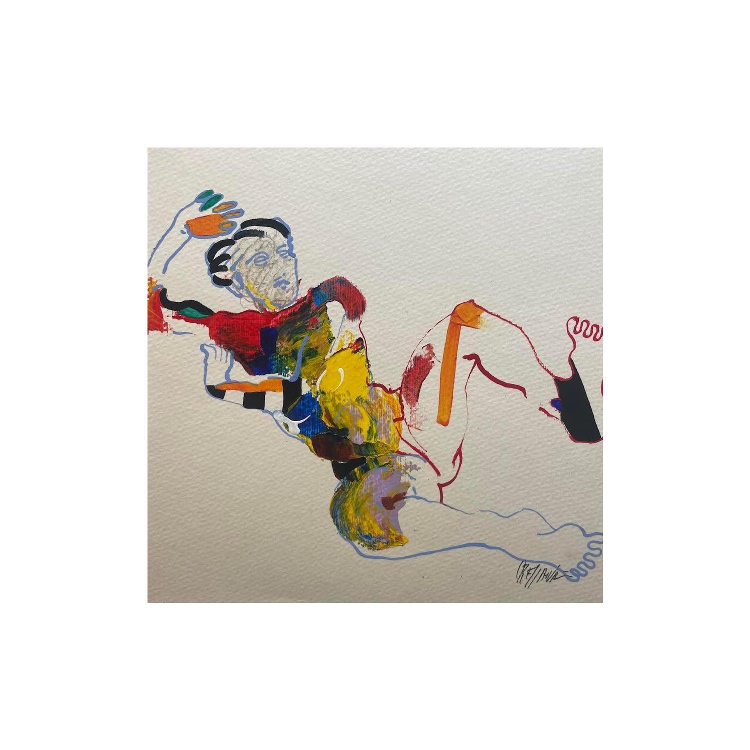 L'artiste a utilisé la technique Acrylique pour créer cette peinture petit format sur Papier de style Figuratif sur le thème Nu.