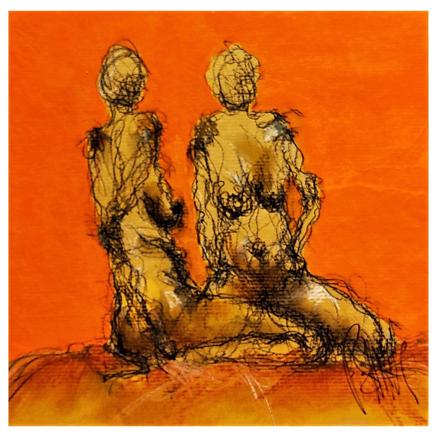 L'artiste a utilisé la technique Acrylique pour créer cette peinture petit format sur papier de style Figuratif sur le thème nu.