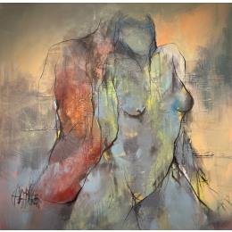 L'artiste a utilisé la technique Acrylique pour créer cette peinture grand format sur Papier de style Figuratif sur le thème Nu.