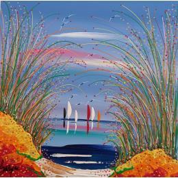 L'artiste a utilisé la technique Acrylique pour créer cette peinture petit format sur Carton toilé de style Figuratif sur les thèmes Paysages, Nature, Marine.