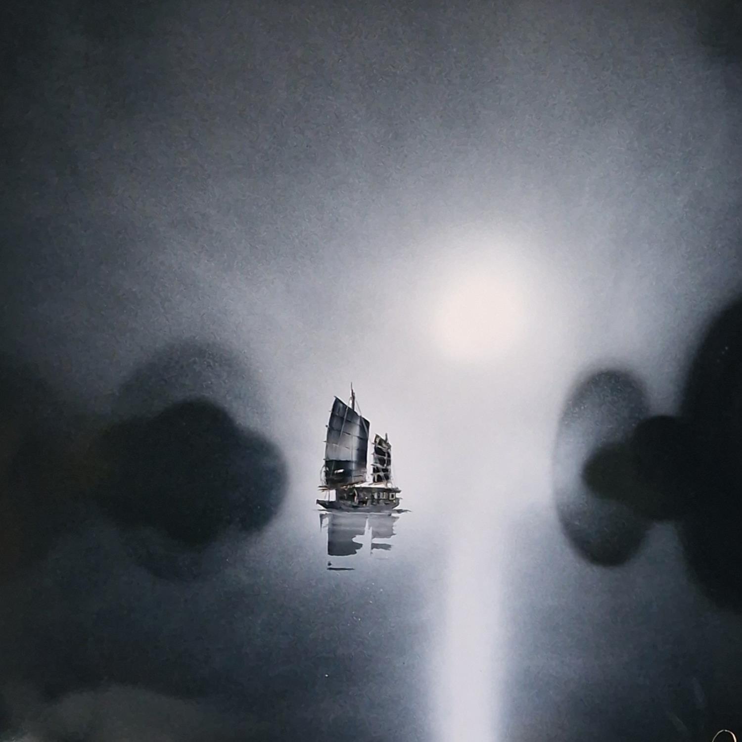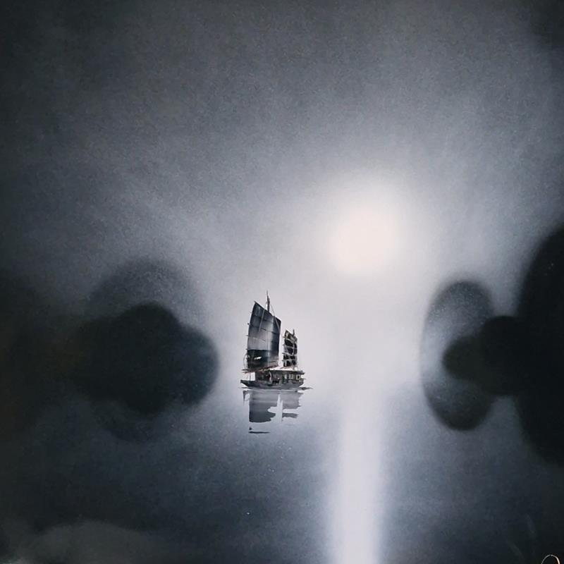 L'artiste a utilisé les techniques Acrylique, Carton pour créer cette peinture grand format sur Carton de style Figuratif sur les thèmes Paysages, Noir & blanc.