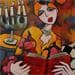 L'artiste a utilisé la technique Acrylique pour créer cette peinture petit format sur bois de style Figuratif sur les thèmes Portraits, scènes de vie.