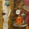 L'artiste a utilisé les techniques Acrylique, Collage, Papier, Pastel, Feuille d'or pour créer cette peinture petit format sur Carton toilé de style Figuratif sur le thème Portraits.