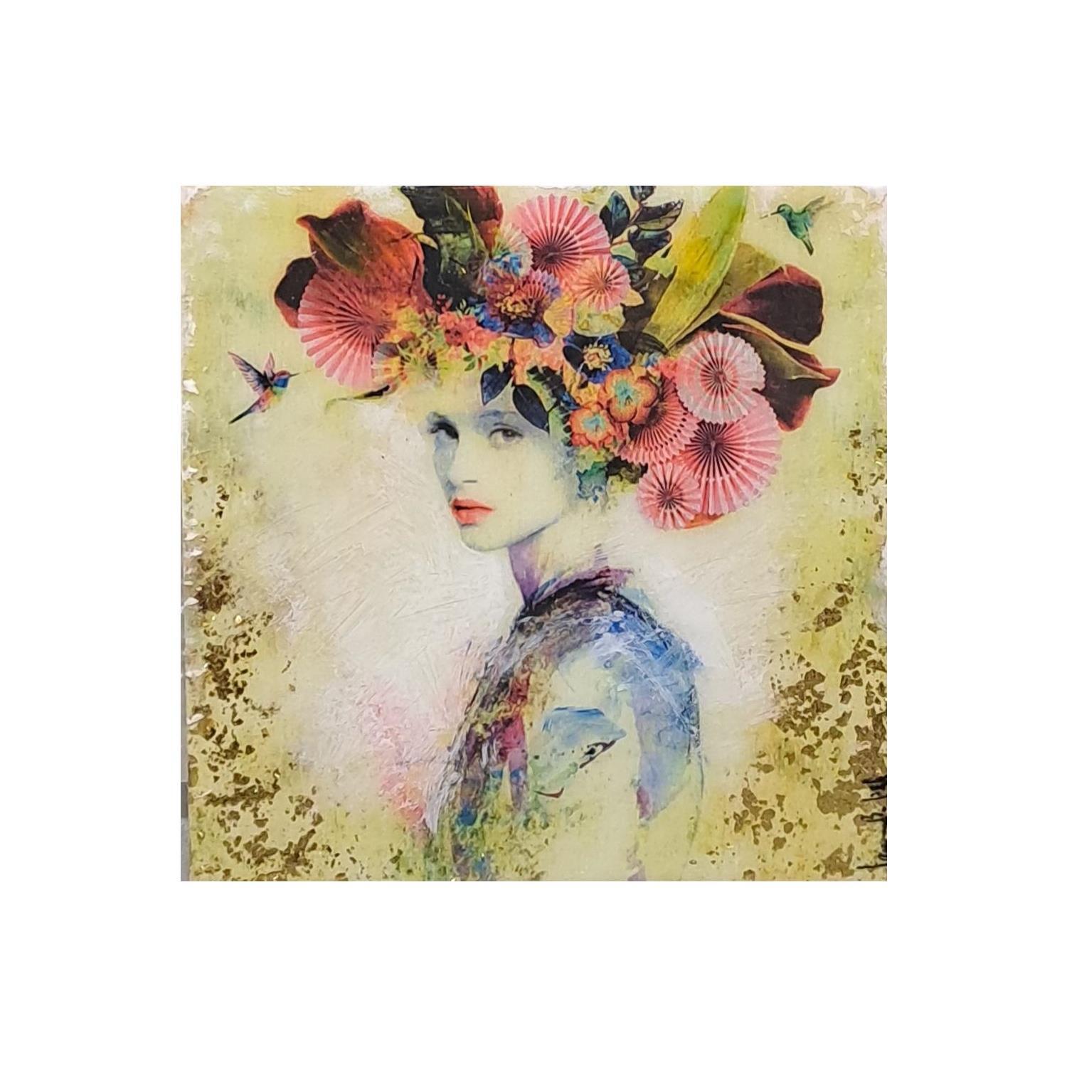 L'artiste a utilisé les techniques Acrylique, Résine pour créer cette peinture petit format sur Bois de style Figuratif sur le thème Portraits.