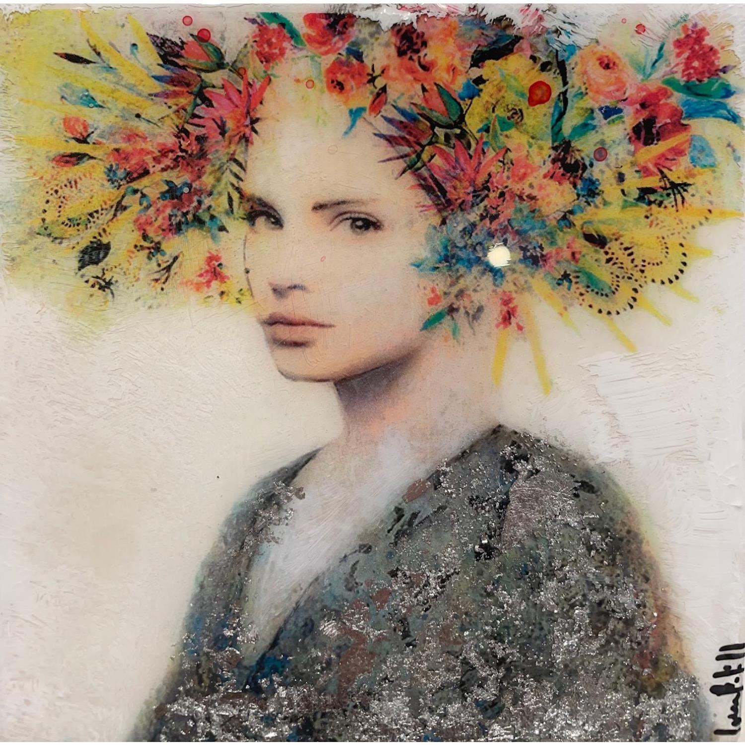 L'artiste a utilisé les techniques Acrylique, Résine pour créer cette peinture petit format sur Bois de style Figuratif sur le thème Portraits.