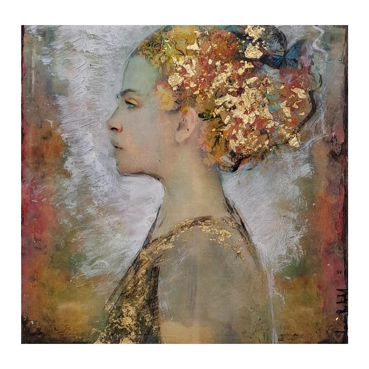 L'artiste a utilisé les techniques Acrylique, Résine pour créer cette peinture petit format sur Bois de style Figuratif sur le thème Portraits.