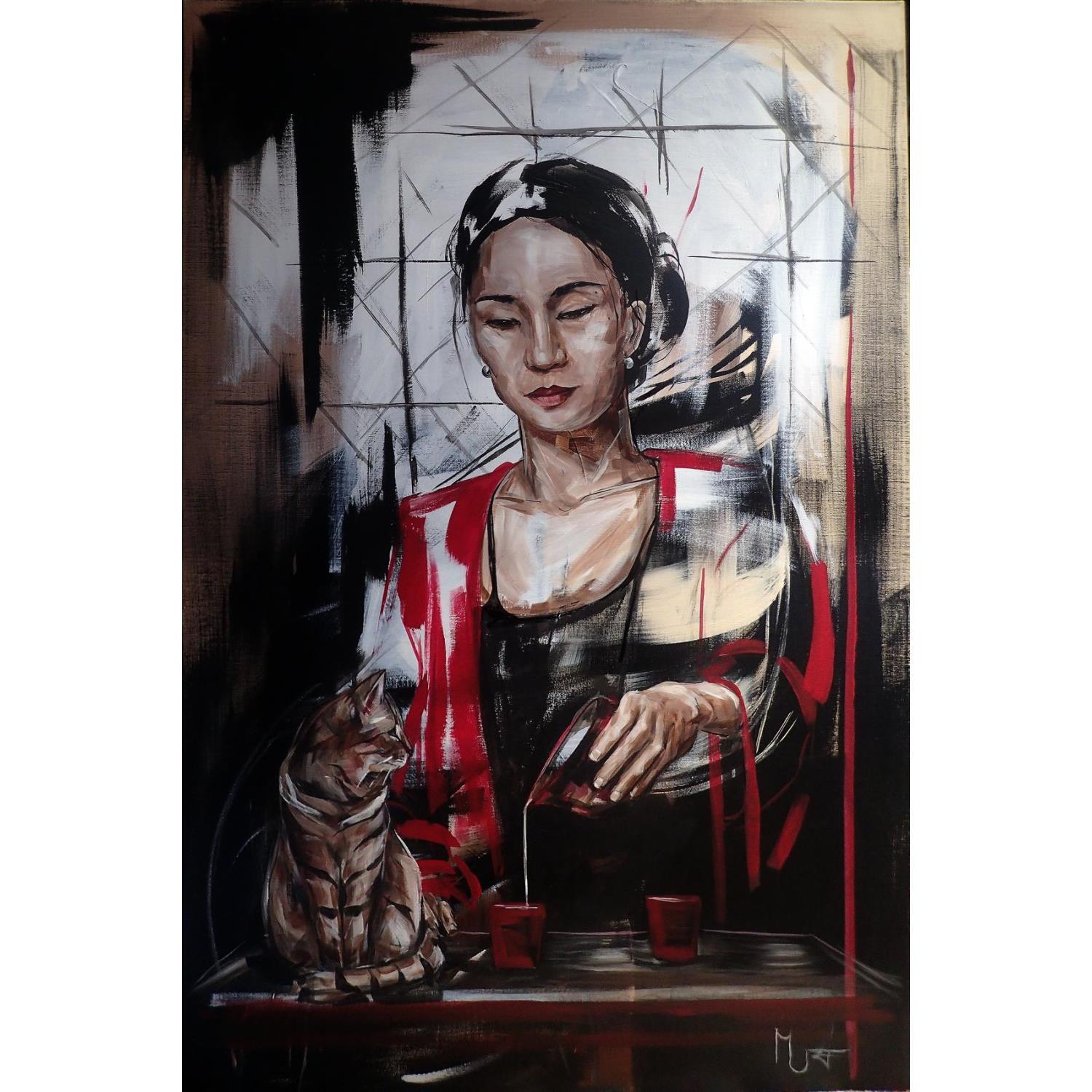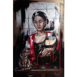 L'artiste a utilisé la technique Acrylique pour créer cette peinture grand format sur Toile de style Figuratif sur les thèmes Portraits, Scènes de vie.