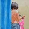 Cette oeuvre d'art contemporain unique et originale « Fitting room » a été réalisée par l'artiste contemporain ZIM. L'artiste a utilisé la technique acrylique pour créer cette peinture petit format sur papier de style Figuratif.
