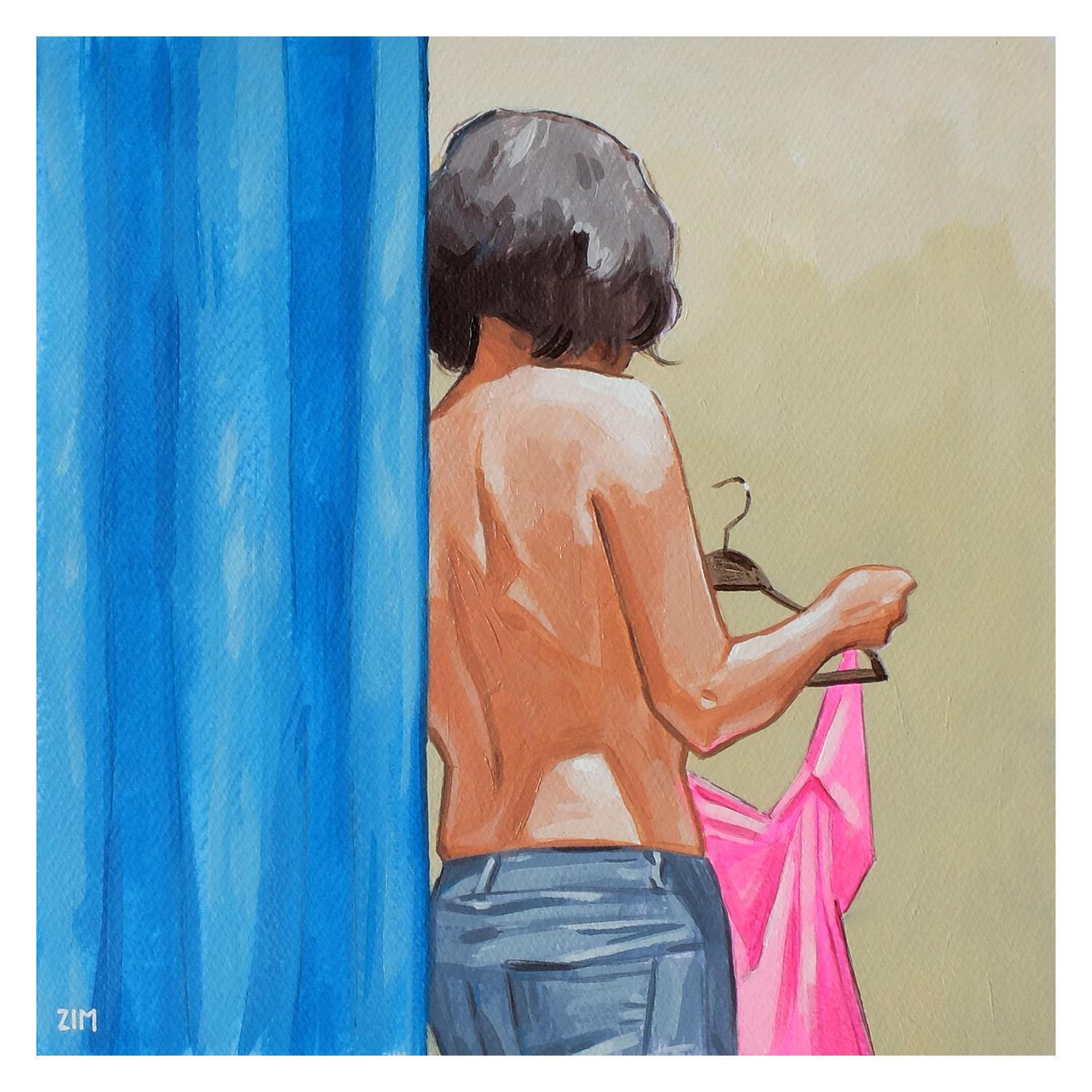 Peinture Fitting room par ZIM | Tableau Figuratif Portraits Société Scènes de vie Acrylique