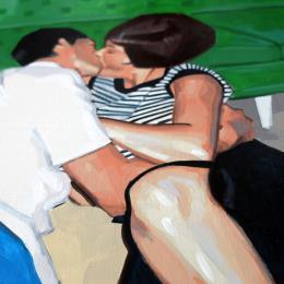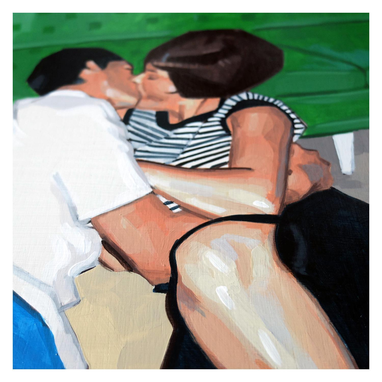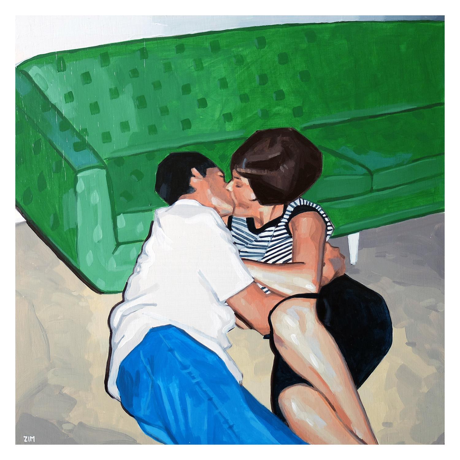 Peinture Kiss on the floor par ZIM | Tableau Figuratif Portraits Société Scènes de vie Acrylique