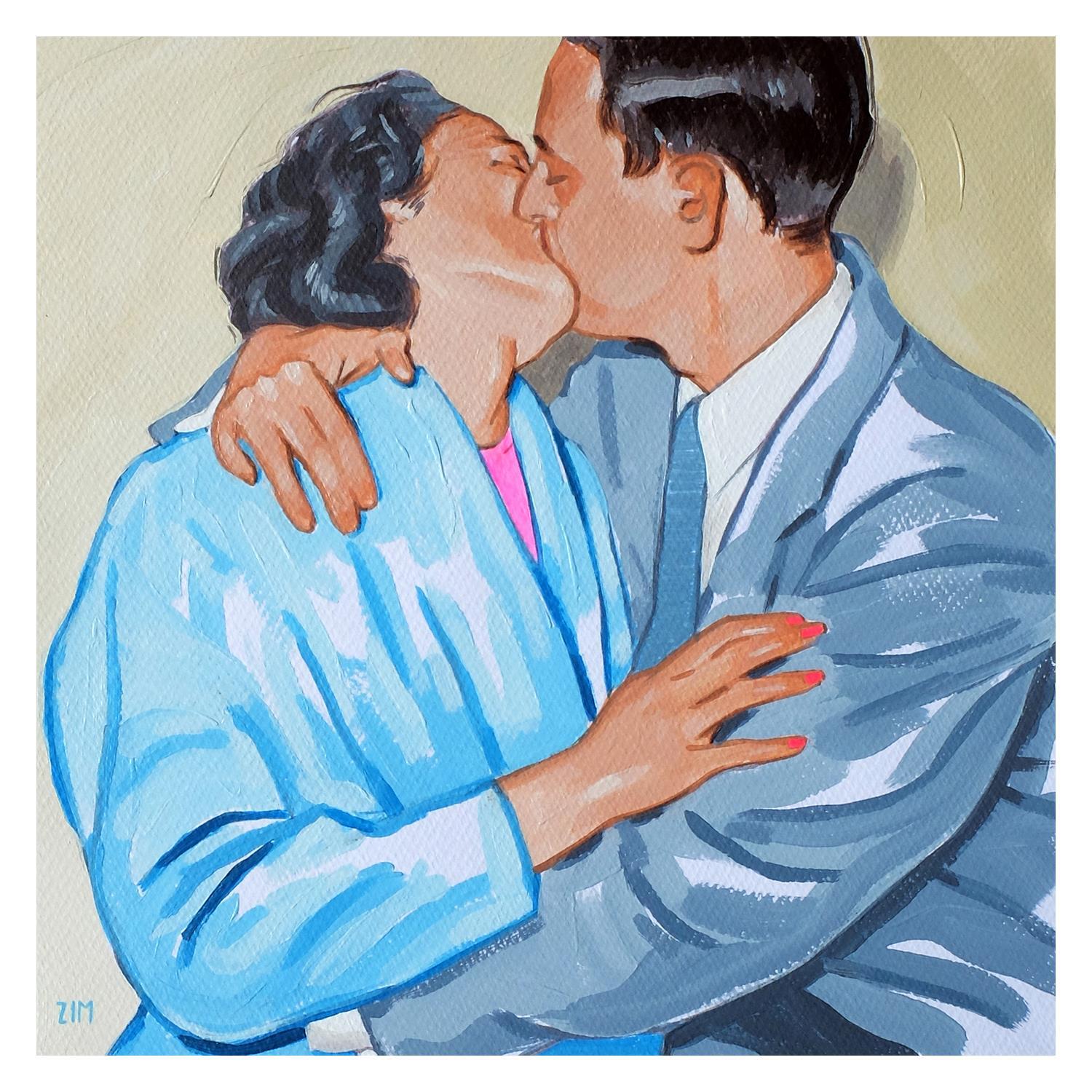 Peinture Lover kiss par ZIM | Tableau Figuratif Portraits Société Scènes de vie Acrylique
