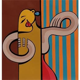 L'artiste a utilisé la technique Acrylique pour créer cette peinture petit format sur toile de style Figuratif sur le thème scènes de vie.