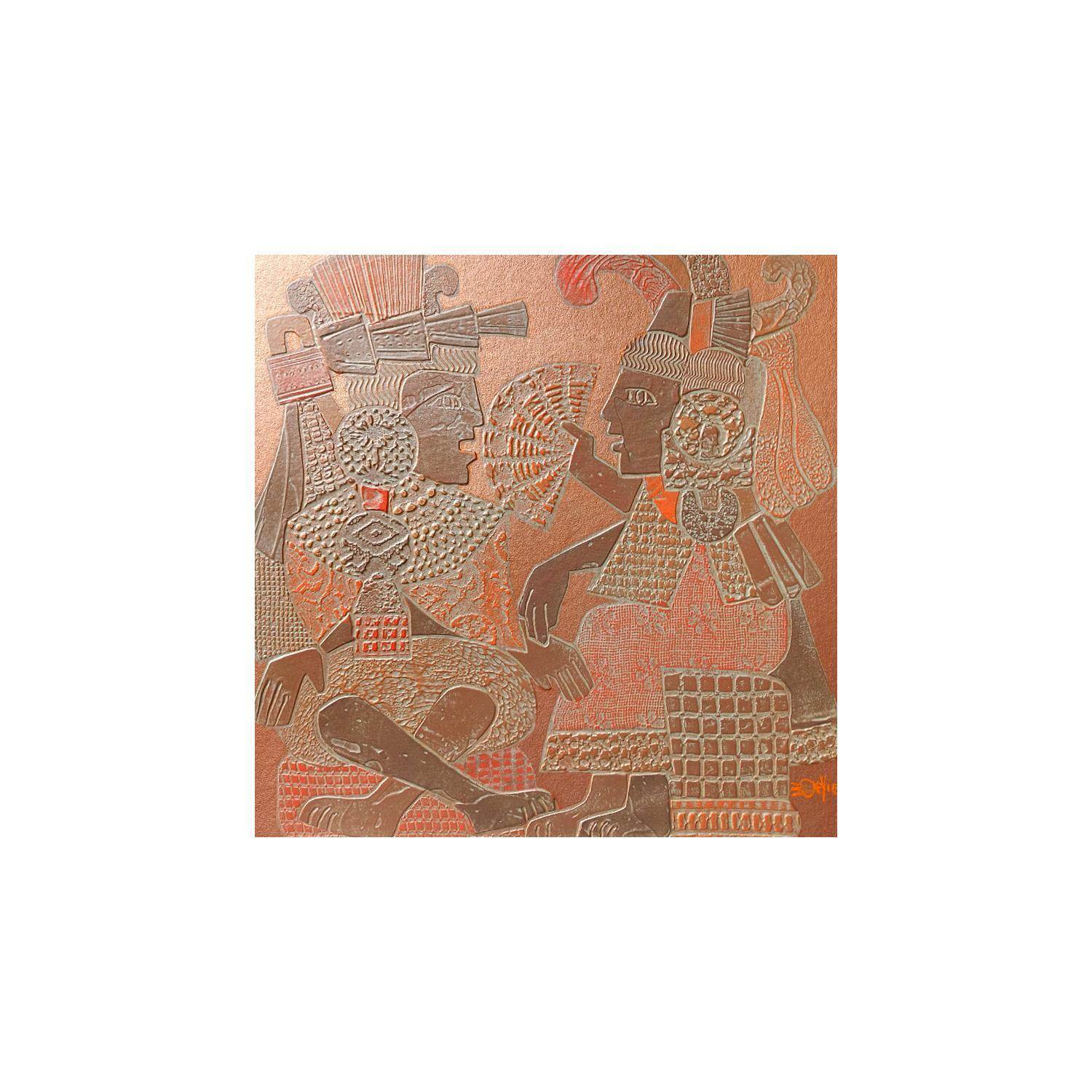 Cette oeuvre d'art contemporain unique et originale "701. AZTEQUES. Cuivre et orange" a été réalisée par l'artiste contemporain Devie Bernard .