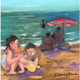 L'artiste a utilisé la technique Acrylique pour créer cette peinture petit format sur papier de style Figuratif sur le thème scènes de vie.