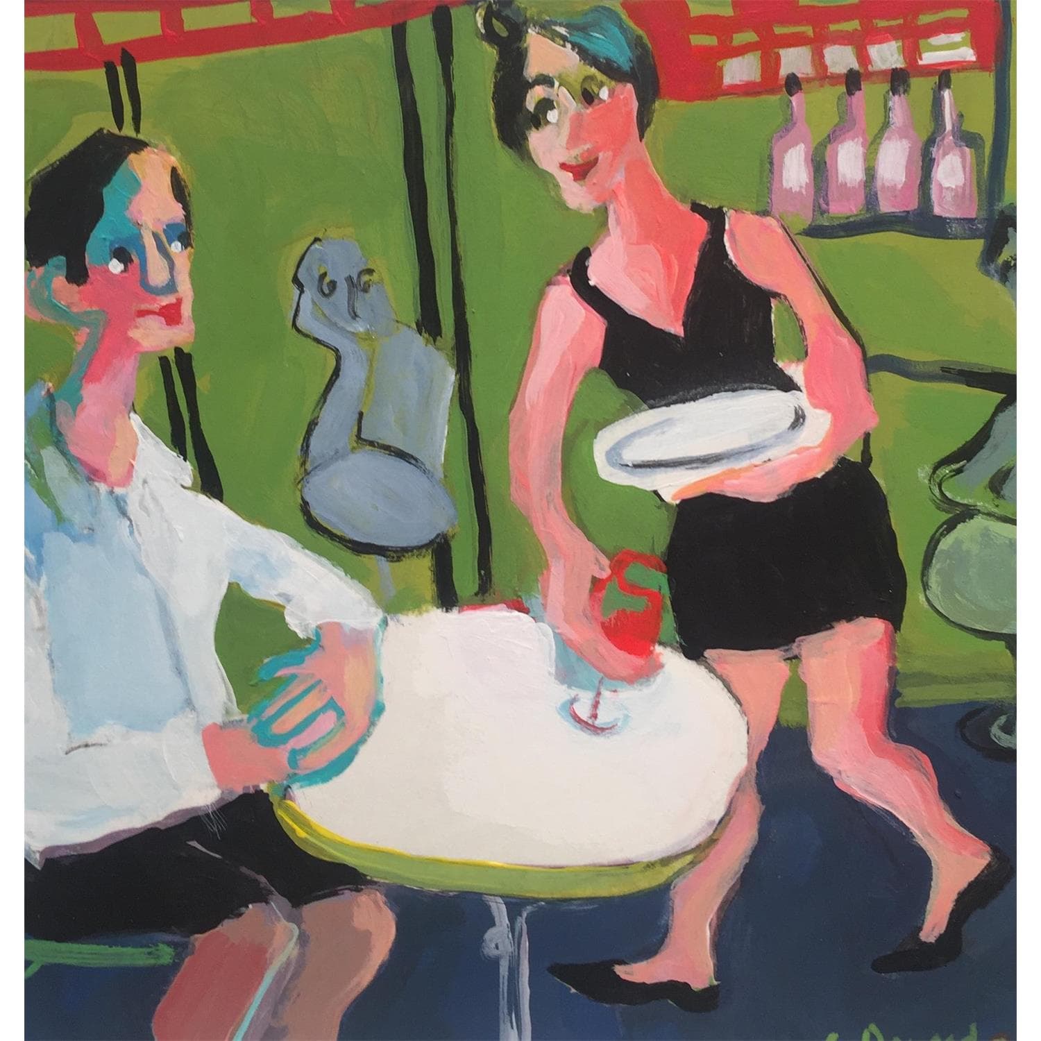 Le bar vertPeinture Le bar vert par Doucedame Christine | Tableau Figuratif Scènes de vie Acrylique