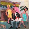 L'artiste a utilisé la technique Acrylique pour créer cette peinture petit format sur papier de style Figuratif sur le thème scènes de vie.