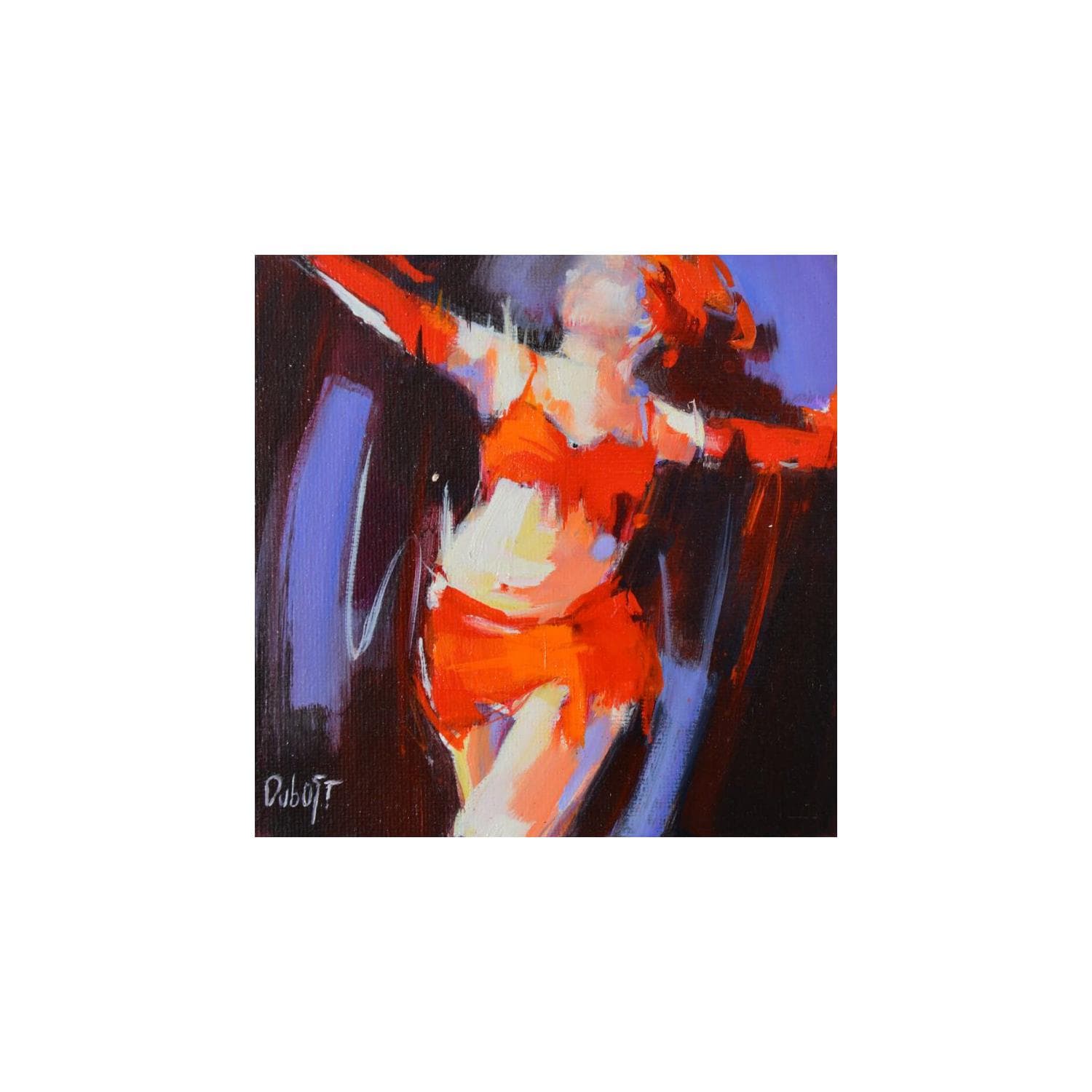 Anne Dubost est une artiste peintre française primée qui aime capturer dans ses peintures la fragilité des personnes, leur détermination, leur sensualité, ainsi que leur éphémère. L’intention véritable d’Anne Dubost est à lire entre les lignes. La suggestion est en effet au cœur de sa démarche qui balaye les couleurs et les matières pour envelopper les sujets d’un halo. Ces mouvements circulaires, présents dans les peintures, entraînent les personnages de l’artiste dans une danse qui exacerbe sa palette tournoyante, ses tonalités et ses contrastes pleins d’énergie. Une œuvre lumineuse qui contient toutes les vibrations du monde, ou selon les mots de Régis Broustet « une palette de couleurs virevoltantes tel un bouquet de feu d’artifice ».
