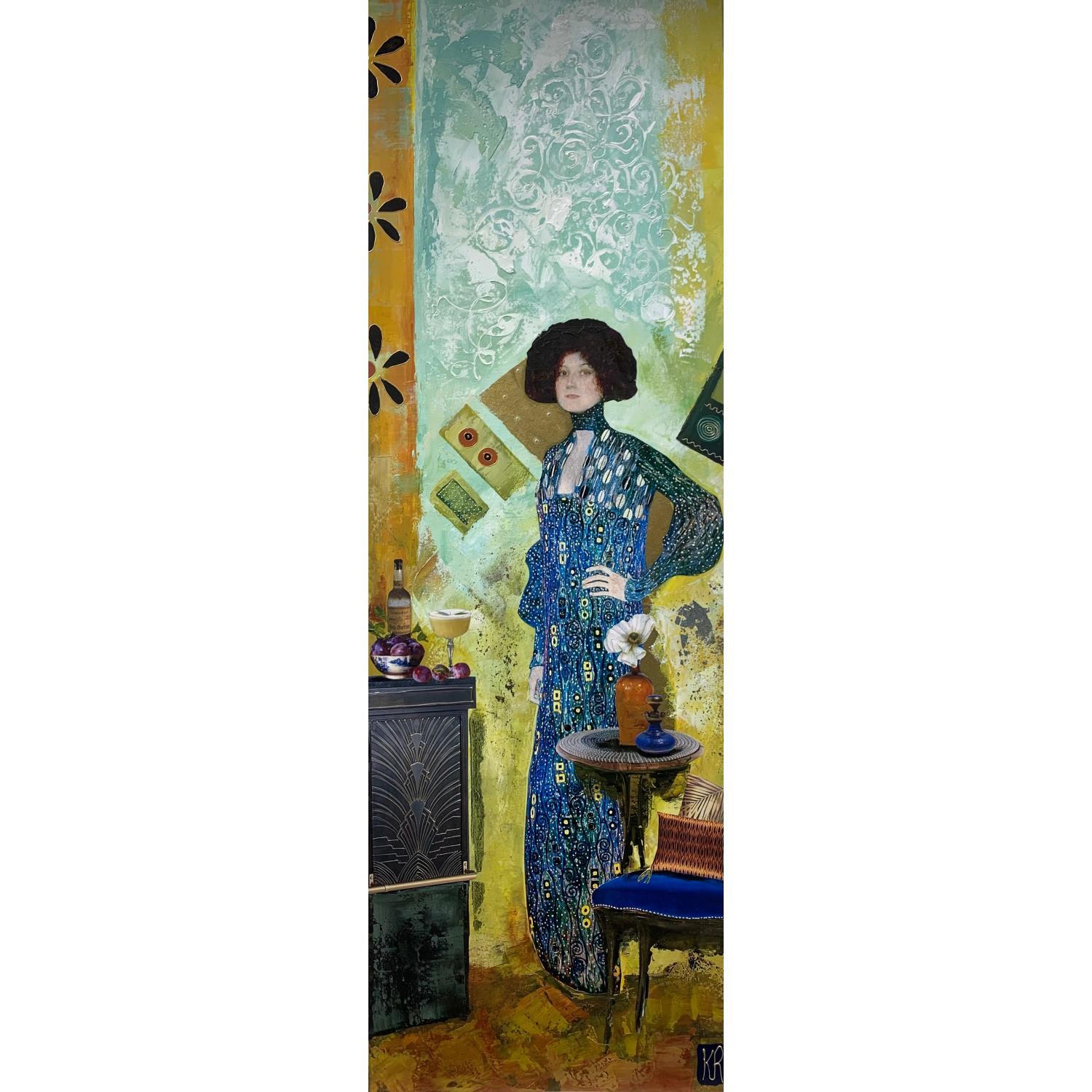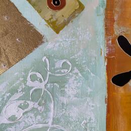L'artiste a utilisé les techniques Acrylique, Collage, Feuille d'or, Pastel, Posca pour créer cette peinture grand format sur Toile de style Figuratif sur le thème Scènes de vie.
