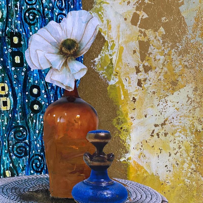 Cette oeuvre d'art contemporain unique et originale "Blue Yasmine" a été réalisée par l'artiste contemporain Romanelli Karine.
