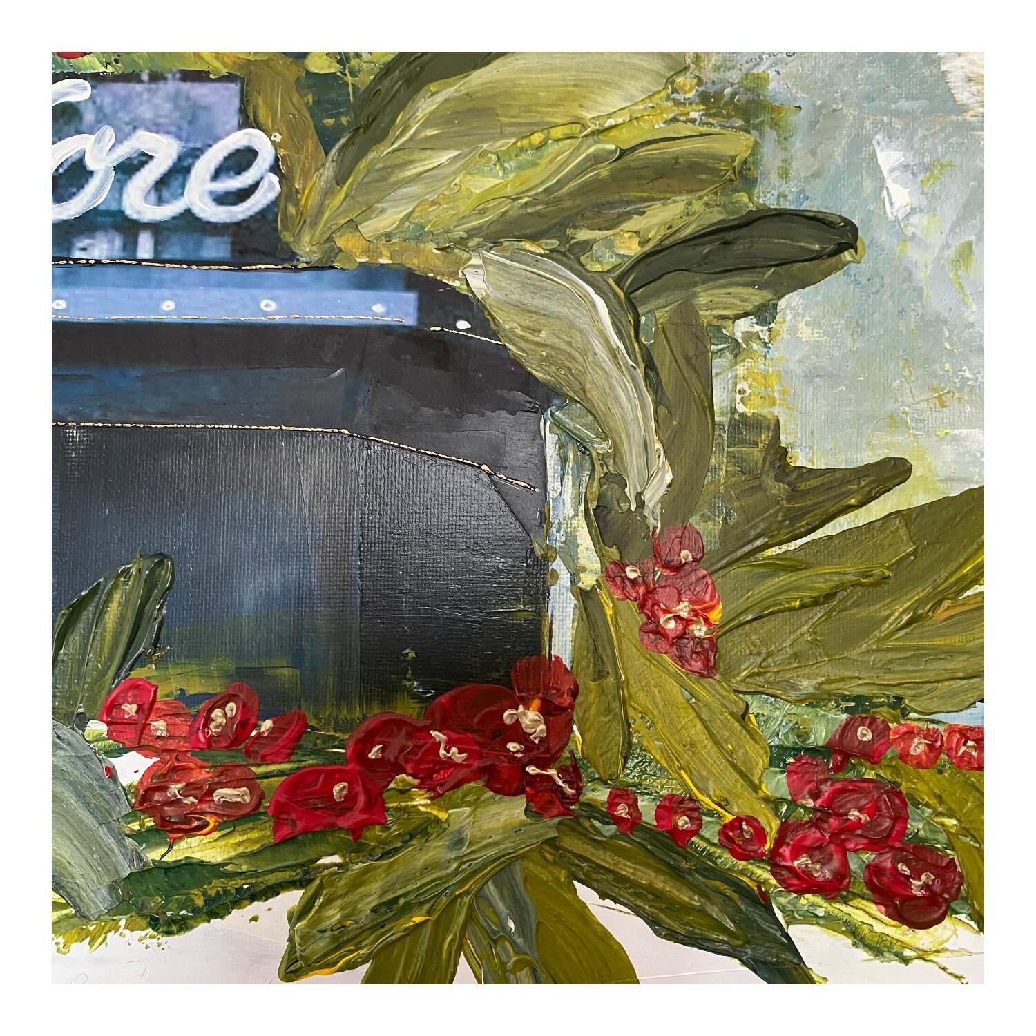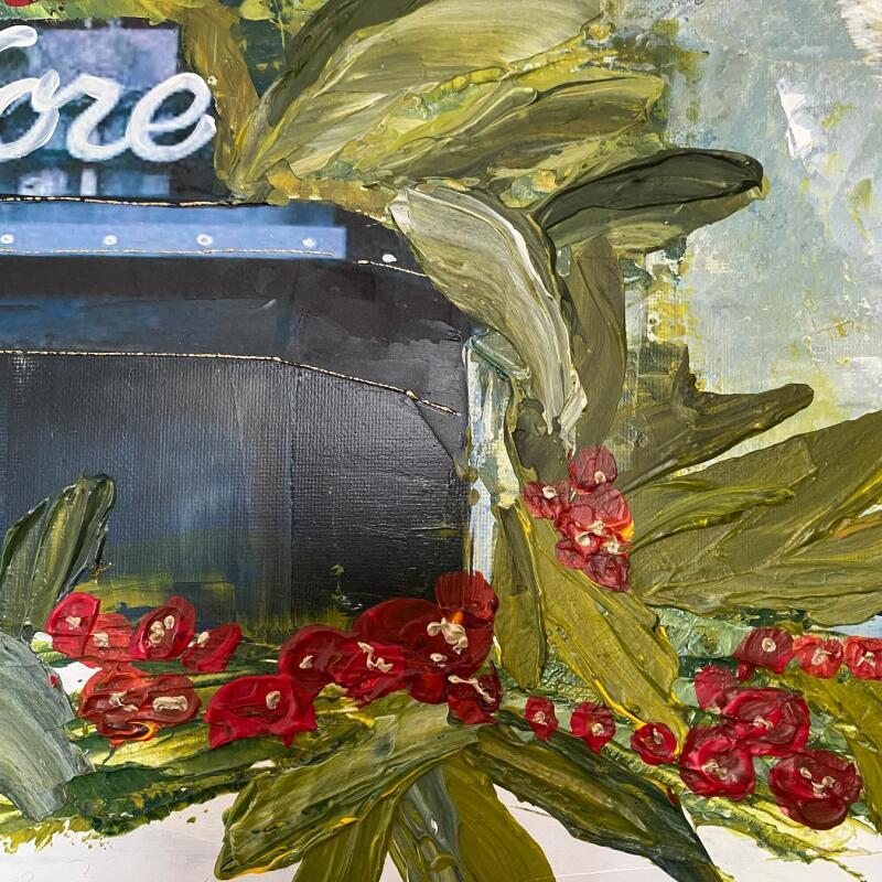 Peinture Le Flore par Romanelli Karine | Tableau Figuratif Urbain Scènes de vie Acrylique Collage Posca Pastel Feuille d'or Papier