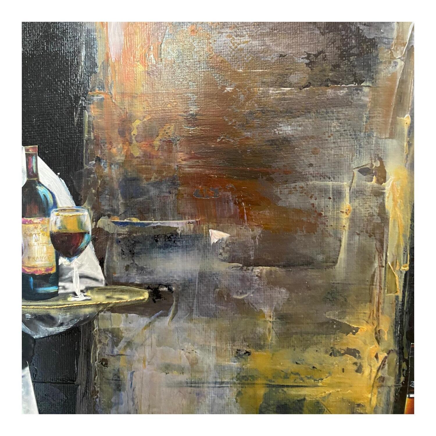 L'artiste a utilisé les techniques Acrylique, Collage, Feuille d'or, Papier, Pastel, Posca pour créer cette peinture grand format sur Toile de style Figuratif sur les thèmes Scènes de vie, Urbain.