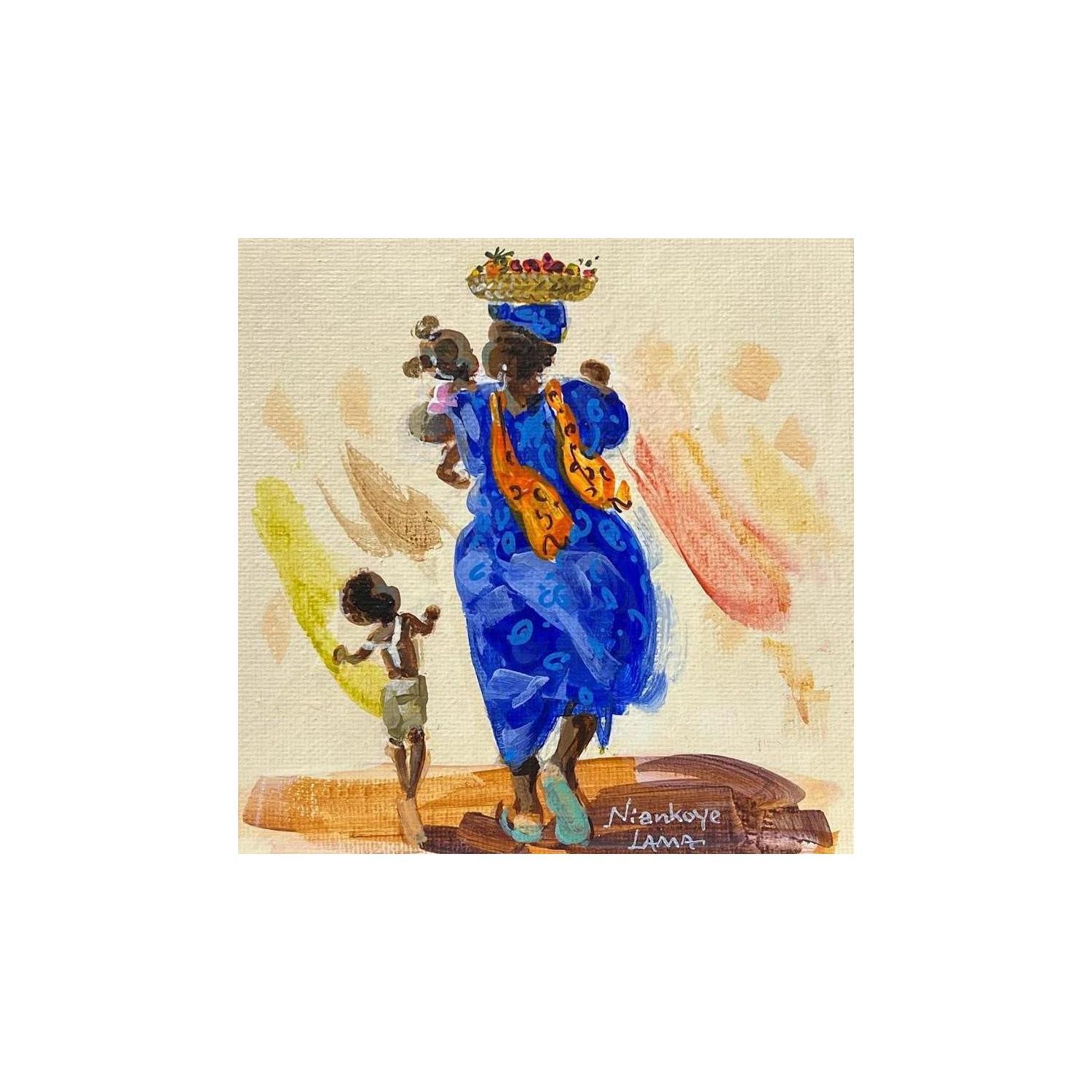 Cette oeuvre d'art contemporain unique et originale "Dame et Enfants" a été réalisée par l'artiste contemporain Lama Niankoye.