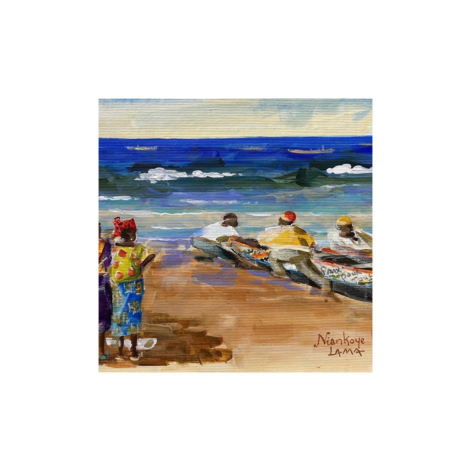 Cette oeuvre d'art contemporain unique et originale "Depart des pecheurs" a été réalisée par l'artiste contemporain Lama Niankoye.