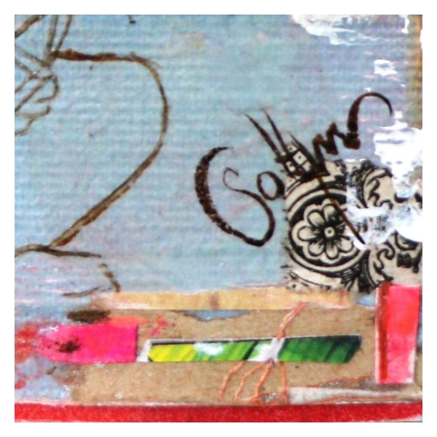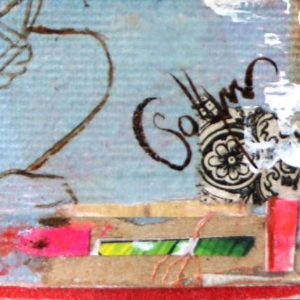 L'artiste a utilisé la technique mixte, Upcycling, Pastel sec, Encre, Acrylique, Up cycling pour créer cette peinture petit format toile sur Bois de style Art Singulier.