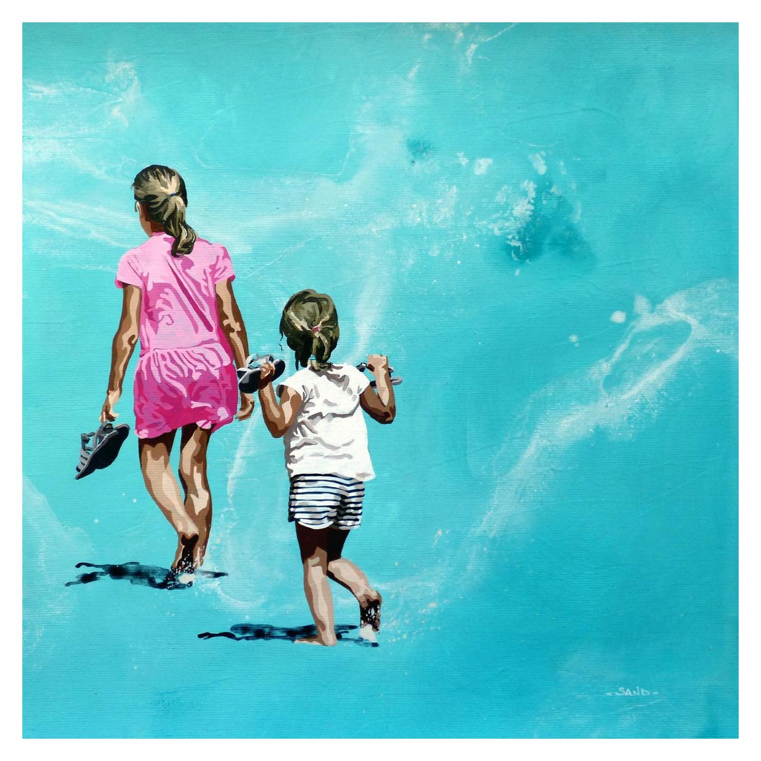 Cette oeuvre d'art contemporain unique et originale "soeurs aux pieds nus" a été réalisée par l'artiste contemporain Sand.