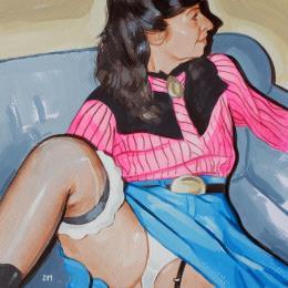 Cette oeuvre d'art contemporain unique et originale « Cowgirl » a été réalisée par l'artiste contemporain ZIM. L'artiste a utilisé la technique acrylique pour créer cette peinture petit format sur papier de style Figuratif.