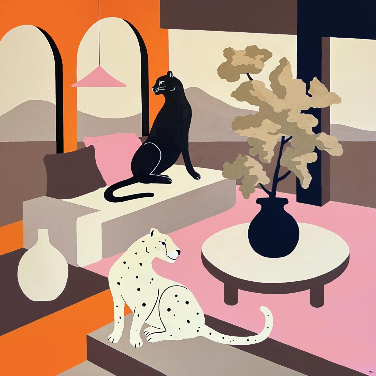 Two's a moodPeinture Two's a mood par Birsak Mariah | Tableau Figuratif Urbain Animaux Architecture Acrylique